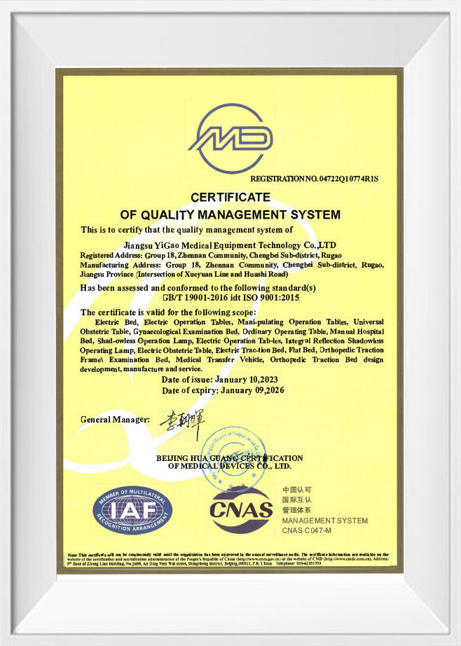 ใบรับรองระบบการจัดการคุณภาพเครื่องมือแพทย์