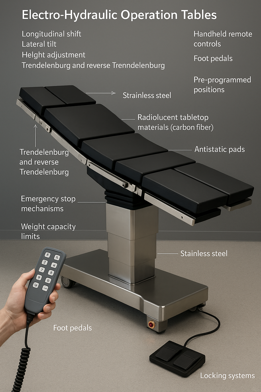 โต๊ะปฏิบัติการไฟฟ้า-ไฮดรอลิกเป็นส่วนประกอบพื้นฐานของห้องผ่าตัดสมัยใหม่ โต๊ะผ่าตัดเหล่านี้รวมระบบไฮดรอลิกเพื่อความแข็งแรงและความมั่นคงเข้ากับระบบควบคุมอิเล็กทรอนิกส์เพื่อความแม่นยำ โต๊ะผ่าตัดรองรับการจัดตำแหน่งของผู้ป่วย รับประกันความสบาย และช่วยให้ศัลยแพทย์เข้าถึงตามหลักสรีระศาสตร์ในระหว่างหัตถการ เนื่องจากความต้องการในการผ่าตัดแตกต่างกันอย่างมากขึ้นอยู่กับความชำนาญพิเศษ ความต้องการของผู้ป่วย และทรัพยากรของสถาบัน จึงต้องพิจารณาอย่างรอบคอบเมื่อเลือกโต๊ะผ่าตัดแบบไฟฟ้า-ไฮดรอลิก โรงพยาบาลและคลินิกต้องประเมินคุณลักษณะและคุณประโยชน์ของตารางการผ่าตัดที่แตกต่างกัน เพื่อให้แน่ใจว่าแบบจำลองที่เลือกนั้นสอดคล้องกับทั้งเป้าหมายทางคลินิกและการใช้งานในระยะยาว