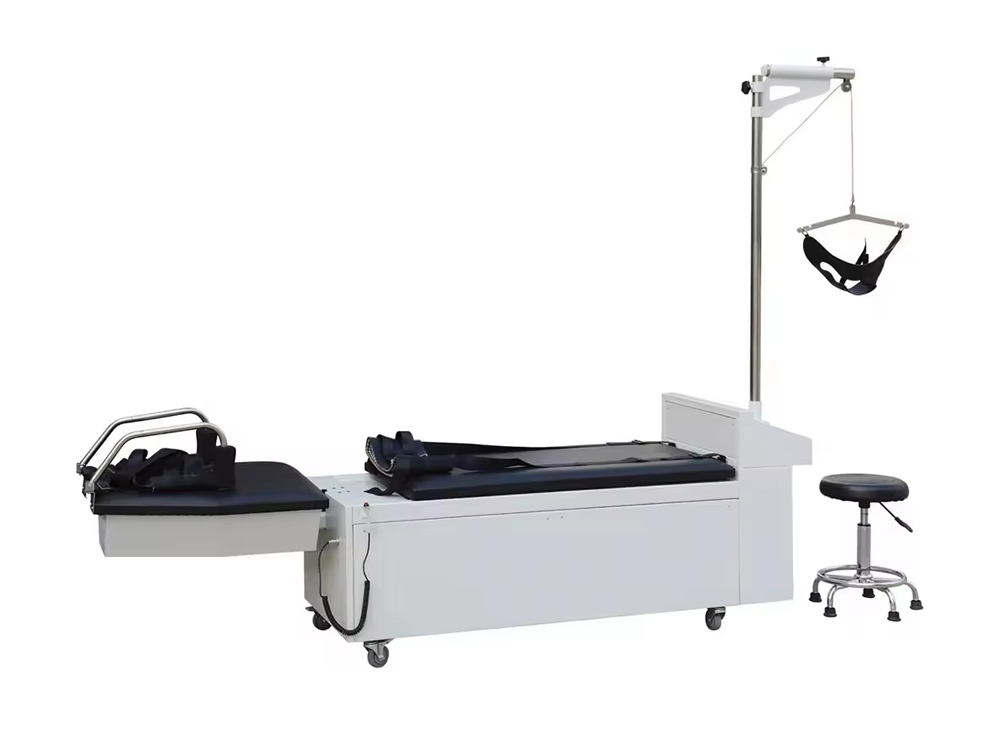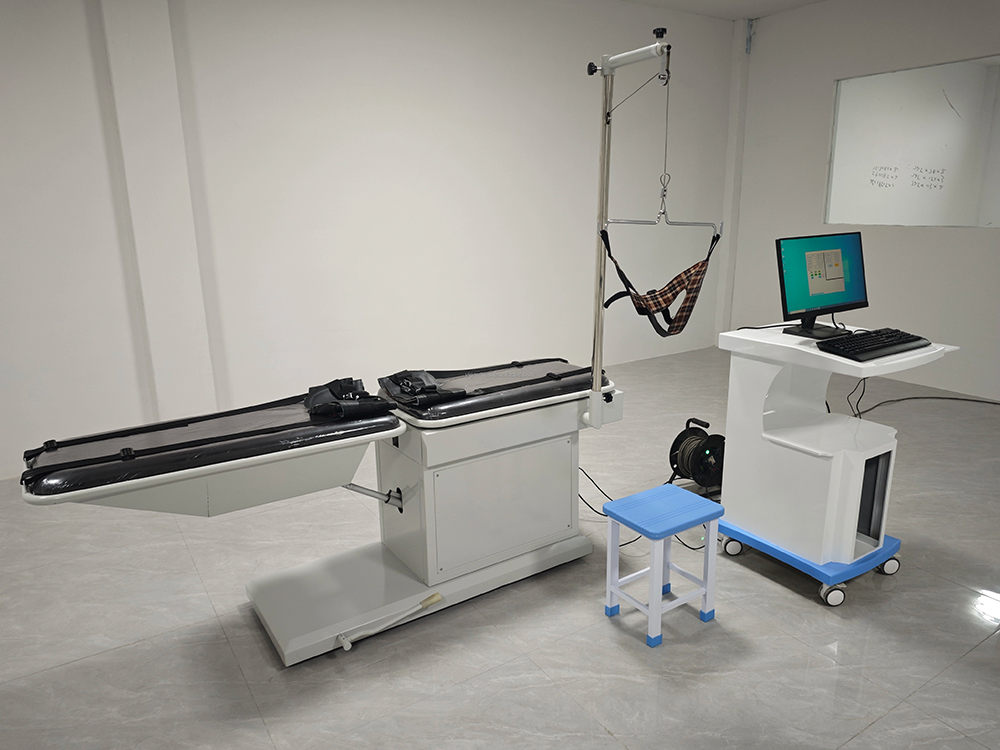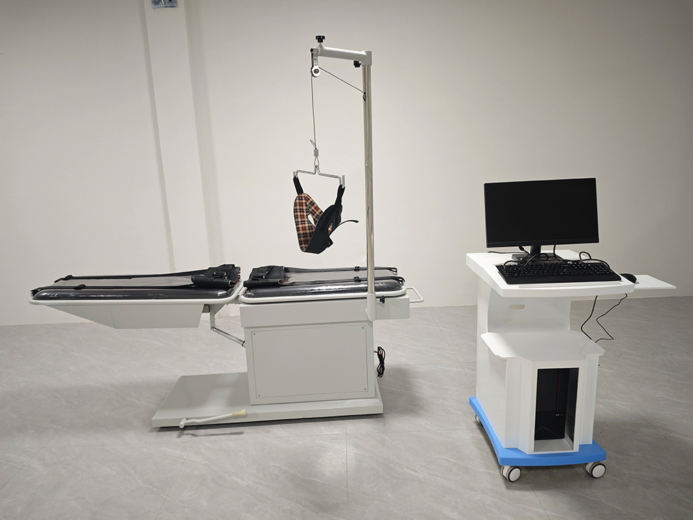 ผลิตภัณฑ์นี้เป็นเตียงดึงการรักษากระดูกสันหลังส่วนคอและกระดูกสันหลังส่วนเอวสามมิติ โดยมีข้อมูลทั้งหมดที่ควบคุมโดยไมโครคอนโทรลเลอร์ จอ LCD และมอเตอร์เชิงเส้นเป็นแรงผลักดัน ทำให้เกิดการรักษาที่ชาญฉลาดอย่างเต็มที่ การหมุนและมุมเชิงมุมวัดโดยใช้เทคโนโลยีการเข้ารหัสการหมุน ทำให้การวัดมุมแม่นยำยิ่งขึ้น ผลการรักษาแก้ไขมีความสำคัญอย่างยิ่งต่อข้อหลังส่วนเอว ในการปฏิบัติทางคลินิก การลากแนวนอน การลากเชิงมุม และการลากแบบหมุนสามารถทำได้แยกกันหรือรวมกันเพื่อเอาชนะความไม่เพียงพอของการกระทำครั้งเดียวและบรรลุการลากสามมิติ การดึงเอวและการดึงปากมดลูกสามารถทำได้พร้อมกัน เพื่อรับรองความปลอดภัยของผู้ป่วย เมื่อความตึงของคอมากกว่า 200N ต้องกดปุ่มยืนยันก่อนเพิ่มความตึงของคอ เมื่อผู้ป่วยรู้สึกไม่สบาย พวกเขาสามารถกดปุ่มถอยฉุกเฉิน และกลไกการดึงจะดึงกลับทันที