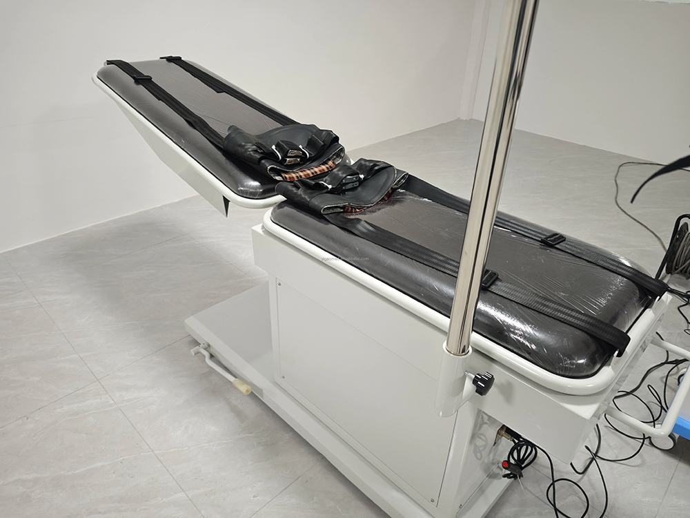 4. ระบบมีระบบหยุดฉุกเฉินแบบคู่ กล่าวคือ ทั้งแพทย์และผู้ป่วยสามารถหยุดฉุกเฉินระหว่างการรักษาได้ ในระหว่างการรักษา ผู้ป่วยจะกดปุ่มหยุดฉุกเฉินไว้ในมือเพื่อให้รู้สึกไม่สบายตัวระหว่างการฉุดลาก การกดปุ่มนี้จะทำให้ระบบเข้าสู่การดำเนินการรีเซ็ตหยุดฉุกเฉินเพื่อหลีกเลี่ยงอุบัติเหตุ