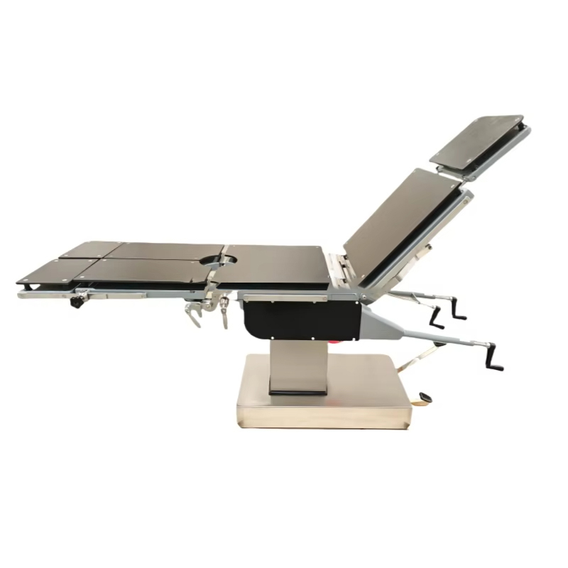 YGS3008A โต๊ะปฏิบัติการกระดูกสันหลังไฮดรอลิกเป็นอุปกรณ์ทางการแพทย์ประสิทธิภาพสูง ซึ่งใช้กันอย่างแพร่หลายในการผ่าตัดต่างๆ เช่น กระดูกสันหลัง ศีรษะและคอ หน้าอกและหน้าท้อง ฝีเย็บ แขนขา สูติศาสตร์ นรีเวชวิทยา จักษุวิทยา โสตศอนาสิกวิทยา และศัลยกรรมกระดูก โต๊ะผ่าตัดประกอบด้วยหัวเตียง พนักพิง แผ่นรองเอว แผ่นรองสะโพก และกระดานแบบแยกขา พร้อมฟังก์ชันการปรับที่ยืดหยุ่น รวมถึงการพับขึ้นและลง การเอียงด้านหน้าและด้านหลัง การเอียงซ้ายและขวาของพนักพิงและกระดานส่วนขา และการควบคุมที่แม่นยำผ่านเกียร์มือหมุน เฟืองตัวหนอน และระบบแร็ค เพื่อให้มั่นใจถึงความมั่นคงและความสบายของตำแหน่งของผู้ป่วยในระหว่างการผ่าตัด ระบบการยกแบบไฮดรอลิกขับเคลื่อนด้วยปั๊มไฮดรอลิกแบบใช้เท้าเหยียบ ซึ่งใช้งานง่าย มีเสถียรภาพ และไม่มีเสียงรบกวน และตอบสนองความต้องการของการผ่าตัดที่ต้องมีการปรับความสูงบ่อยครั้ง การออกแบบโครงสร้าง 2 ชั้น รองรับการถ่ายภาพเอ็กซ์เรย์ อำนวยความสะดวกในการตรวจด้วยภาพ และรับประกันความแม่นยำของการผ่าตัด โต๊ะปฏิบัติการใช้โต๊ะเหล็กคาร์บอนเคลือบสเปรย์และฐานสแตนเลสและเปลือกคอลัมน์ซึ่งมีความต้านทานการกัดกร่อนและความทนทานที่ดีทำให้มั่นใจได้ถึงการใช้งานอุปกรณ์ในระยะยาวและมีเสถียรภาพ การออกแบบโดยรวมมุ่งเน้นไปที่ความปลอดภัยและความมั่นคง ทำให้แพทย์มีแพลตฟอร์มปฏิบัติการที่แม่นยำ ในขณะเดียวกันก็มั่นใจในความปลอดภัยและความสะดวกสบายของผู้ป่วย เป็นตัวเลือกที่เหมาะสำหรับห้องผ่าตัดหลายแผนก
